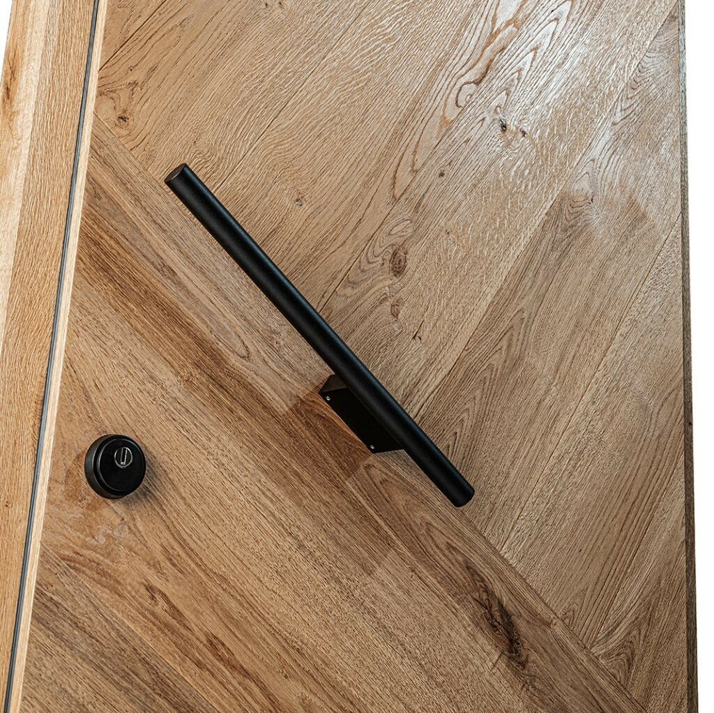 Die einheitliche Oberfläche des Stolar-Türblattes ist wie eine Karte, auf der Sie den Konturen der einzigartigen Ringe und der Struktur von Naturholz folgen können.