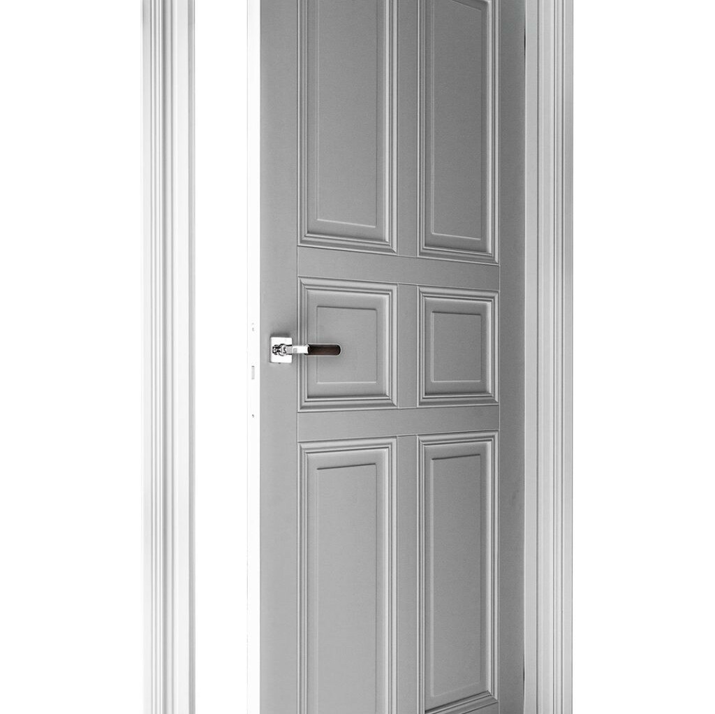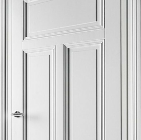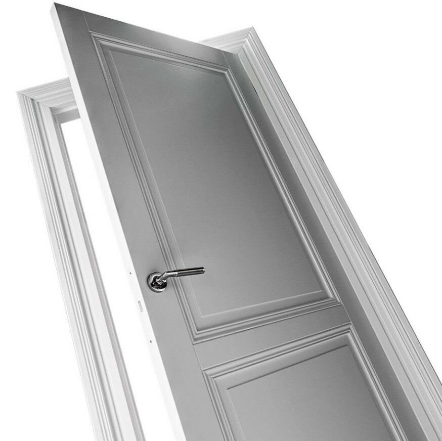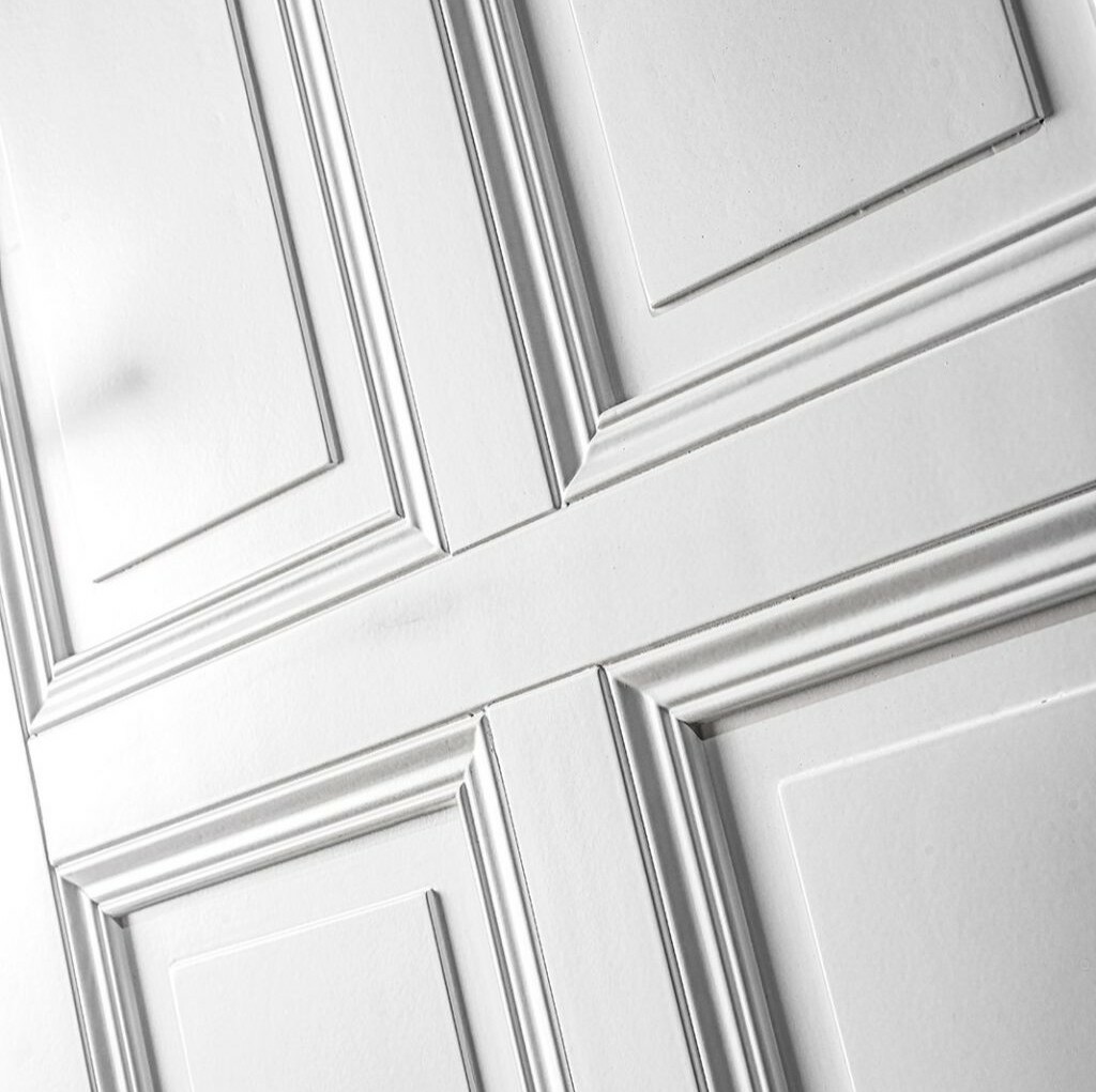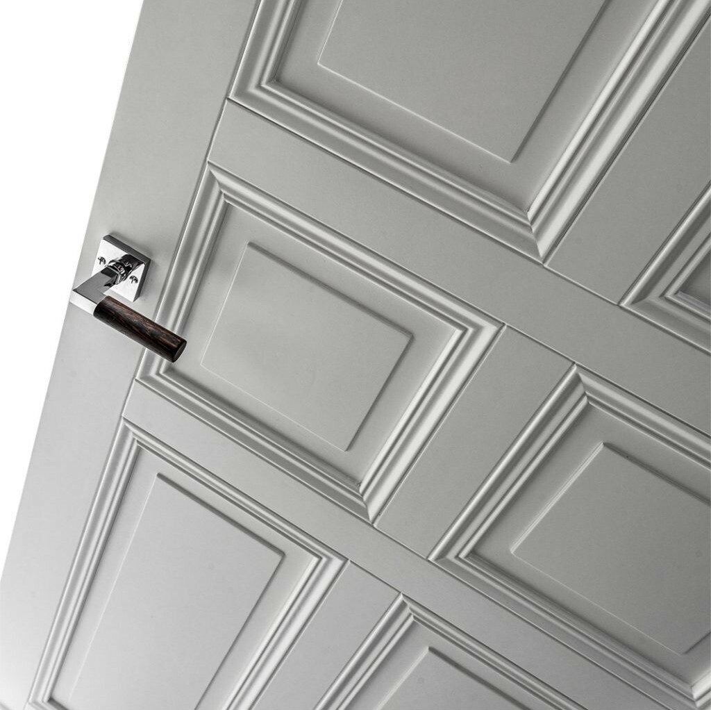Klassische Türflügel in einem Block in Verbindung mit einem ausdrucksstarken Rahmen.