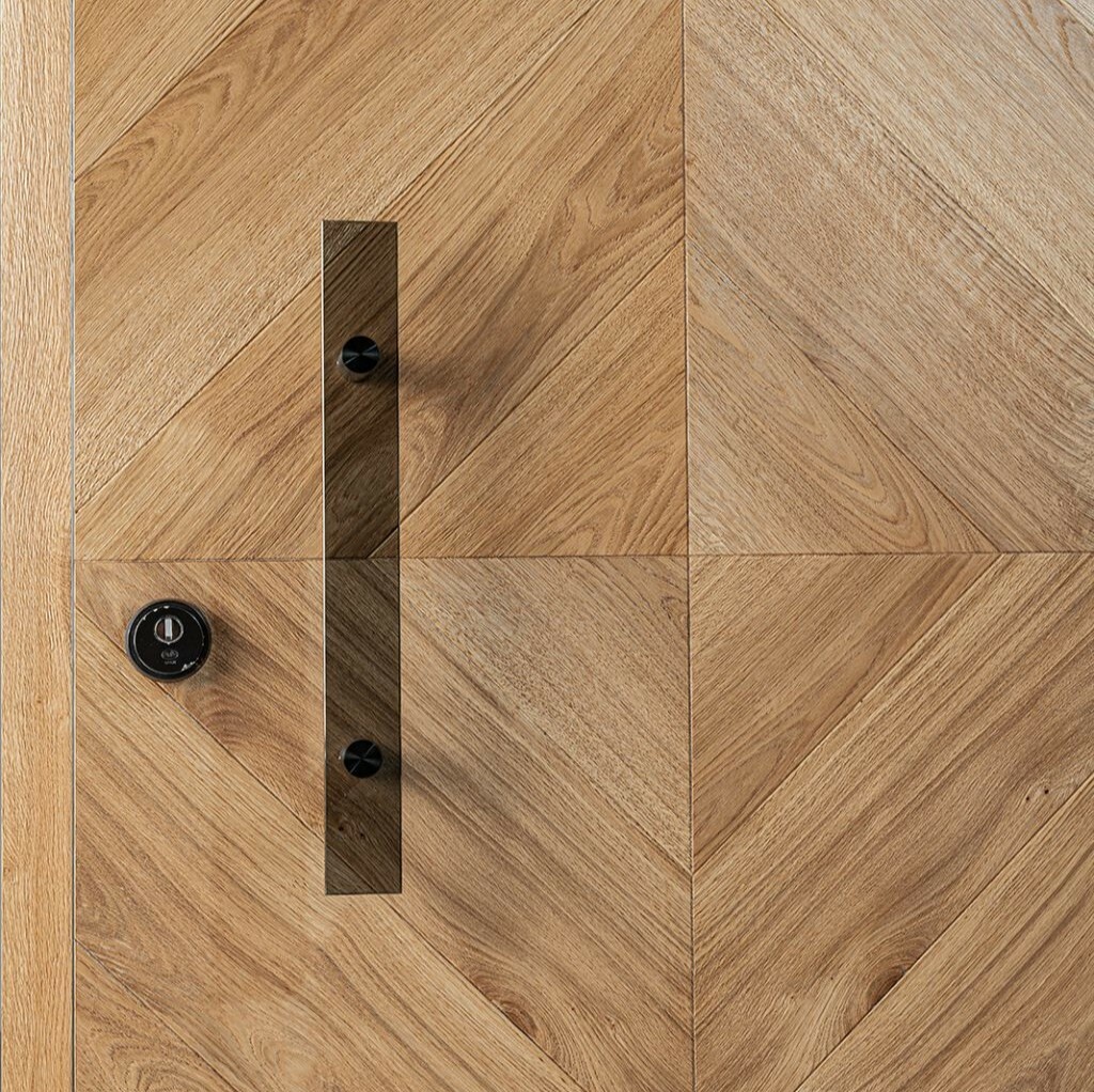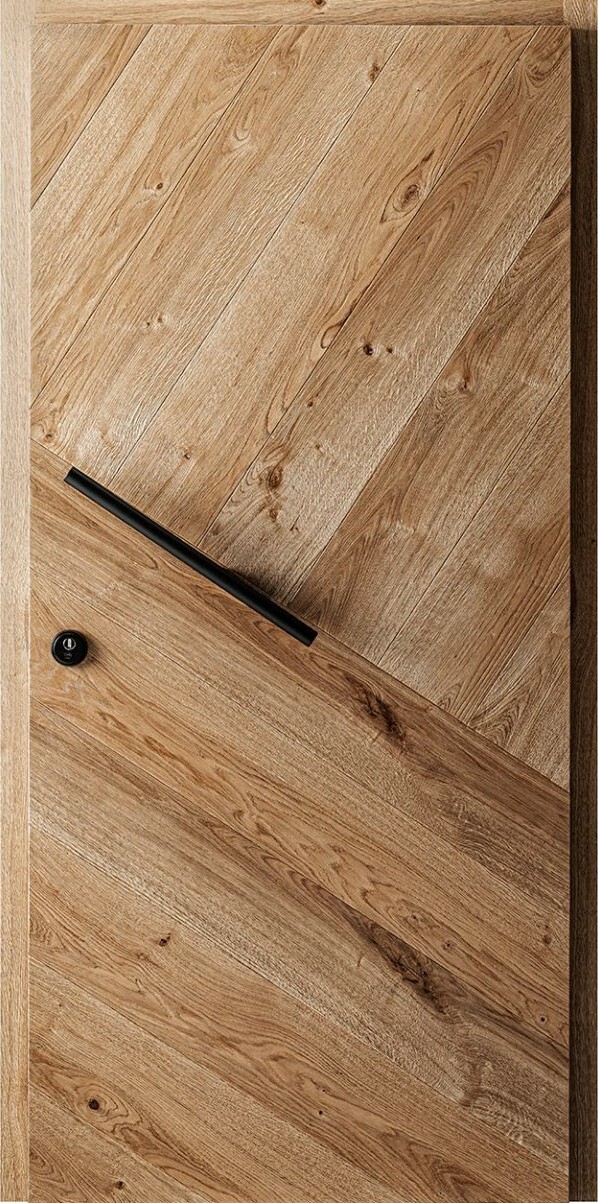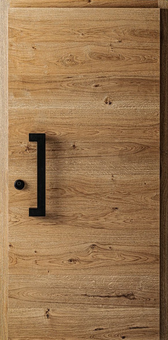 Die einheitliche Oberfläche des Stolar-Türblattes ist wie eine Karte, auf der Sie den Konturen der einzigartigen Ringe und der Struktur von Naturholz folgen können.