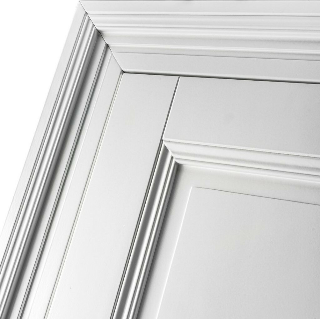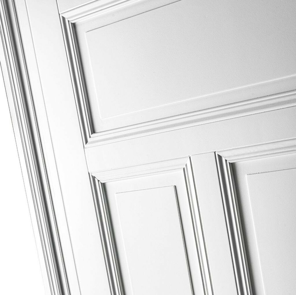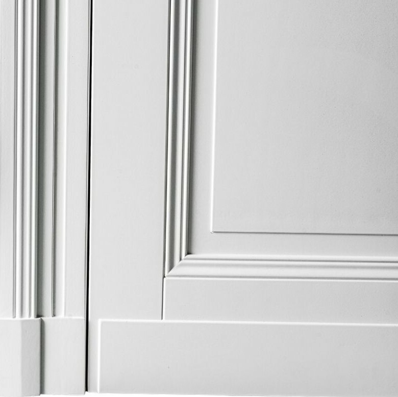 Die Linien gehen präzise vom Sockel auf die Leisten über und zieren den Rahmen, sodass der Blick von einem Detail zum nächsten geht.