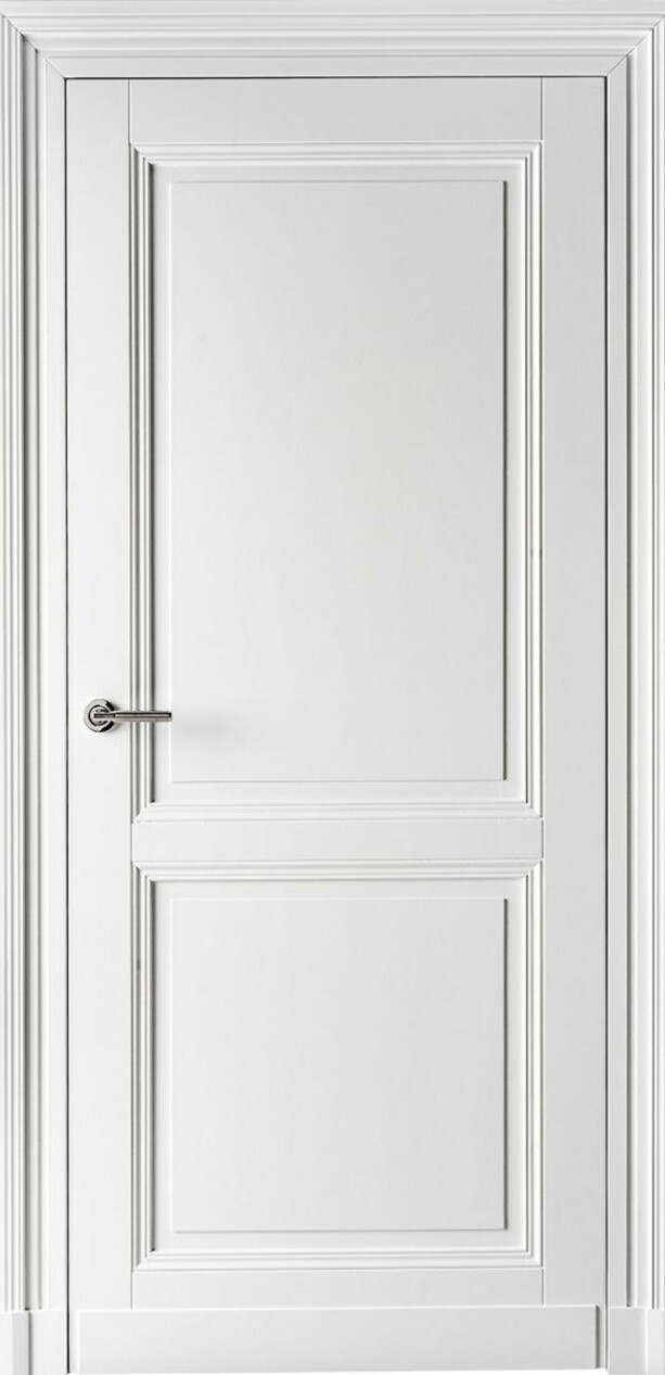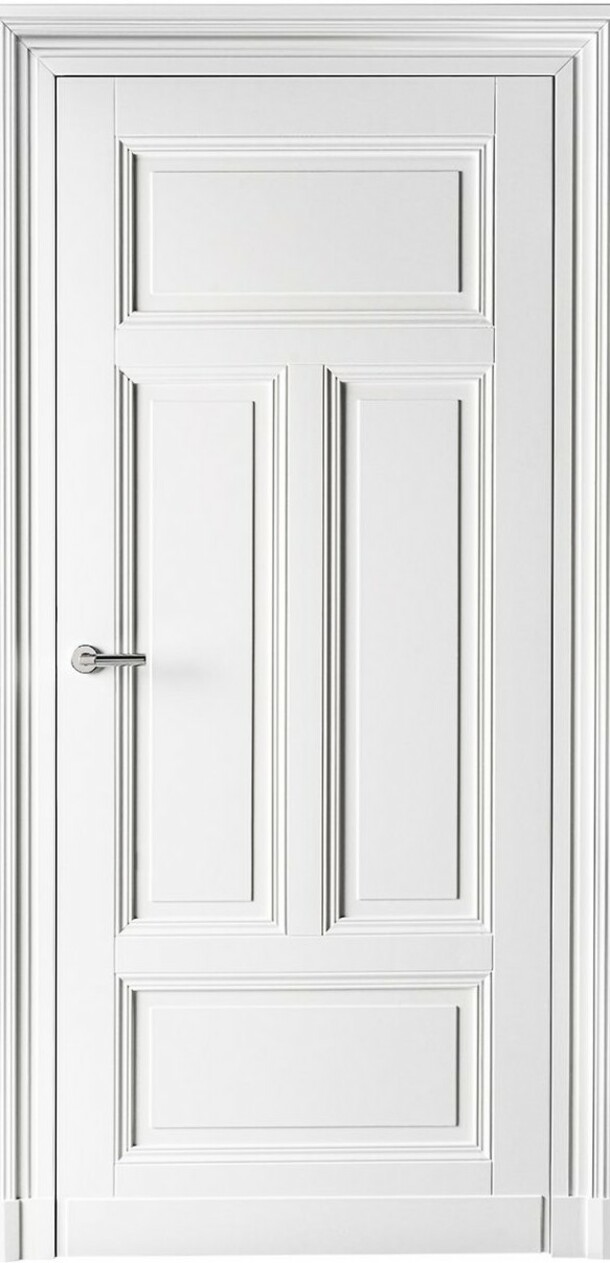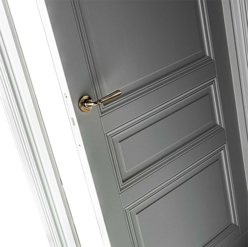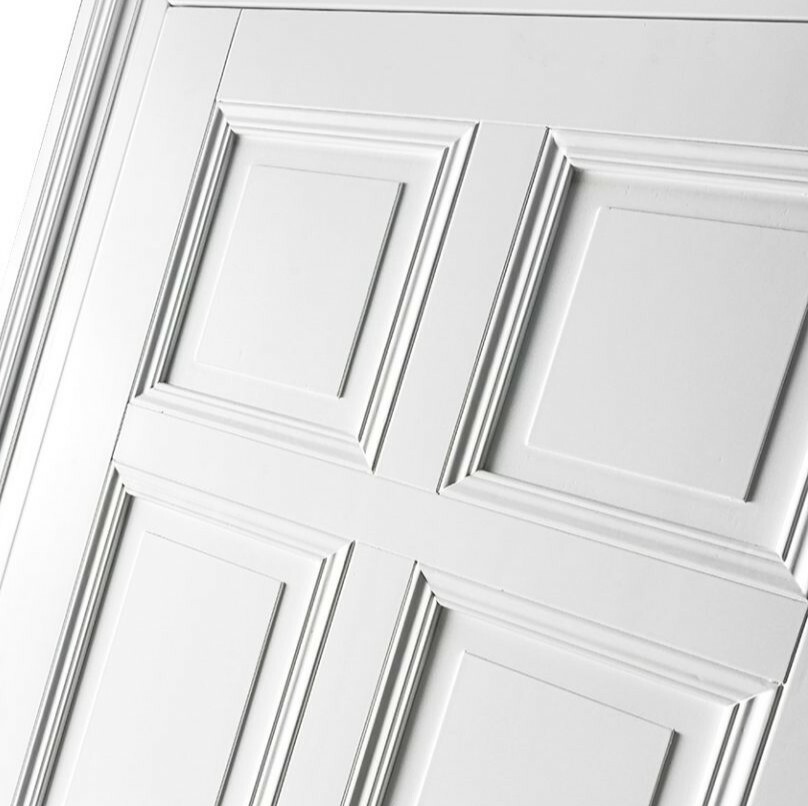 Klassische Türflügel in einem Block in Verbindung mit einem ausdrucksstarken Rahmen.