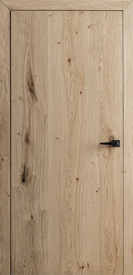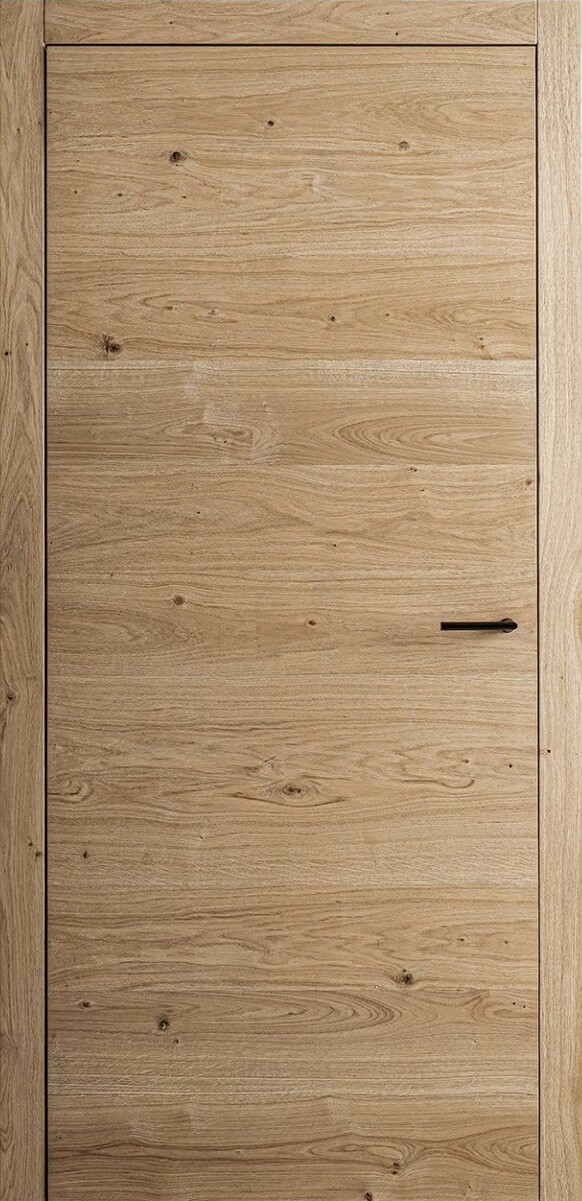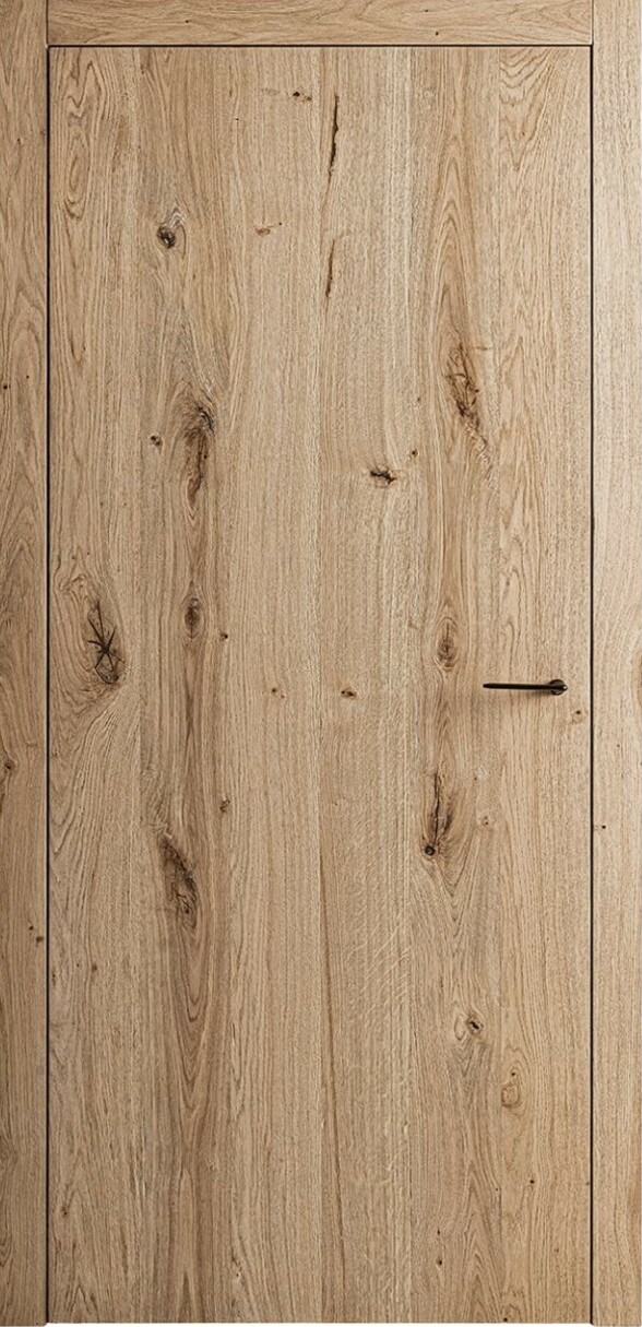 Dank des unbehandelten Eichenholzes sieht jede einzelne Türe dieses Modells individuell gestaltet aus. Trotzdem lässt sich Stiltreue und Einheitlichkeit erkennen.
